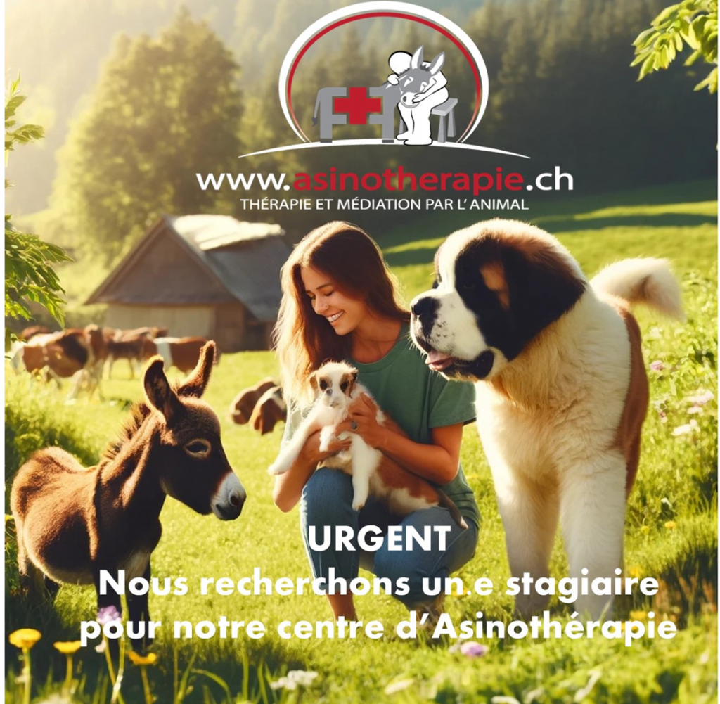 Bienvenue au centre de thérapies et médiation assistée par l'animal. Nous proposons des accompagnements de zoothérapie et des prestations de bien-être et détente avec des ânes miniatures, des chiens ( Saint-Bernard et bichon) dans notre centre situé à Servion ( 15 km de Lausanne).
